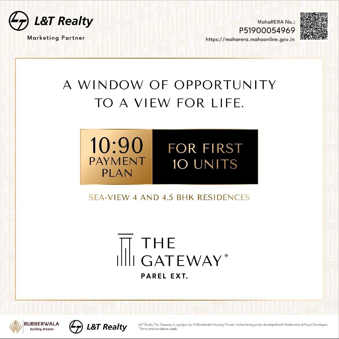 L&T The Gateway Sewri will be constructed on 2.5 acres of land parcel, 1 tower with G+50 floors having 3 BHK, 4 BHK, 4.5 BHK premium residences. L&T The Gateway Project is Near Trans Harbour link road, Sewri, Mumbai with - Sewri Railway Station - 1.3km, Sewri Cross Road - 3.2km and Dadar Railway Station - 4.6km. L&T Sewri Mumbai Project First is Internal amenities - Vitrified Tiles, Granite Kitchen, Stainless steel sink & many more. L&T Realty Se...